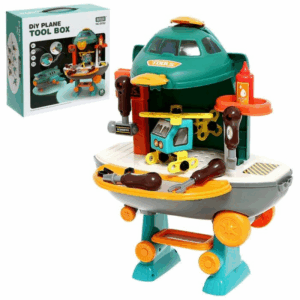 თვითმფრინავის შესაკეთებელი ხელსაწყოების ნაკრები ბავშვთა სათამაშო მოდული 2-1-ში "თვითმფრინავი", სამუშაო მაგიდა ხელსაწყოებით, 45 ელემენტი GH-8092