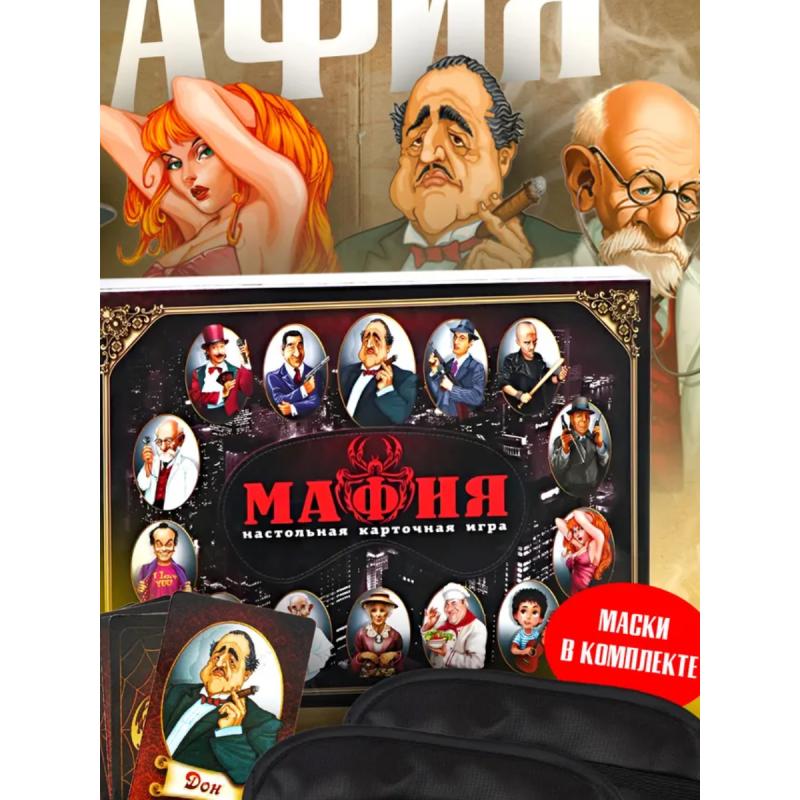 ინტელექტუალური თამაში მთელი ოჯახისთვის “მაფია”. მაფიის ბარათები ! ემოციების ქარიშხალი მაფიის სამაგიდო თამაშიდან გარანტირებულია. როლური ფსიქოლოგიური სამაგიდო თამაში მოზრდილებისთვის “მაფია” კლასიკური ვარიანტი. ეს კარტული თამაში შესაფერისია როგორც მოზრდილთა კომპანიის გასართობად, ასევე მოზარდებისთვის აზარტული თამაშის სახით. მაფიის ბარათები უნივერსალურია. მაფიის თამაშს ადვილად ისწავლიან მოთამაშეები 10 წლიდან.