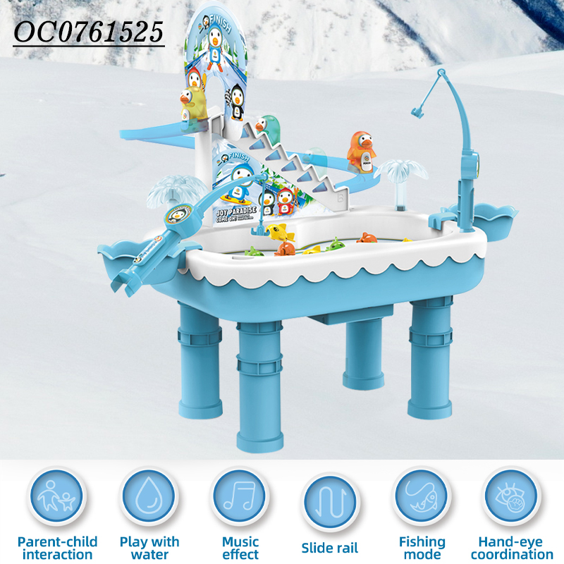 ბავშვებისთვის განკუთვნილი ინტერაქტიული მაგნიტური თევზაობის თამაში არის უმაღლესი დონის თამაში სასრიალოთი და 3 პინგვინით, რომლებსაც ინტეგრირებული მაგნიტური ფუნქციების წყალობით შეუძლიათ სასრიალოს ზედა ნაწილამდე მისვლა. ის მოყვება სულ 9 პატარა თევზს და 3 მაგნიტურ პინგვინს. ეს წყლის სათამაშო ქმნის ჩამთრევ თევზაობის სამყაროს, სადაც ბავშვებს შეუძლიათ მთელი წლის განმავლობაში გართობა.