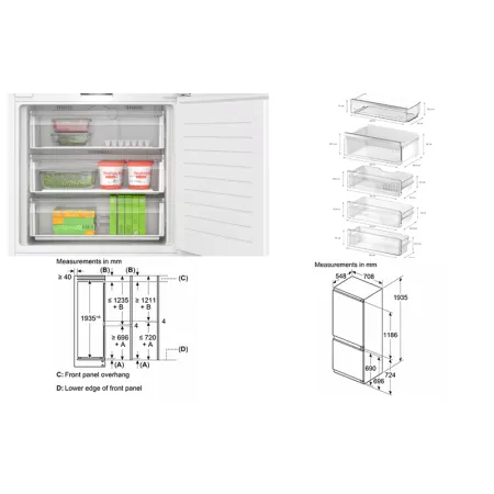რეგულირებადი თაროების რაოდენობა მაცივრის განყოფილებაში:4