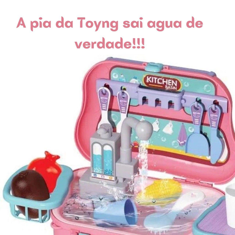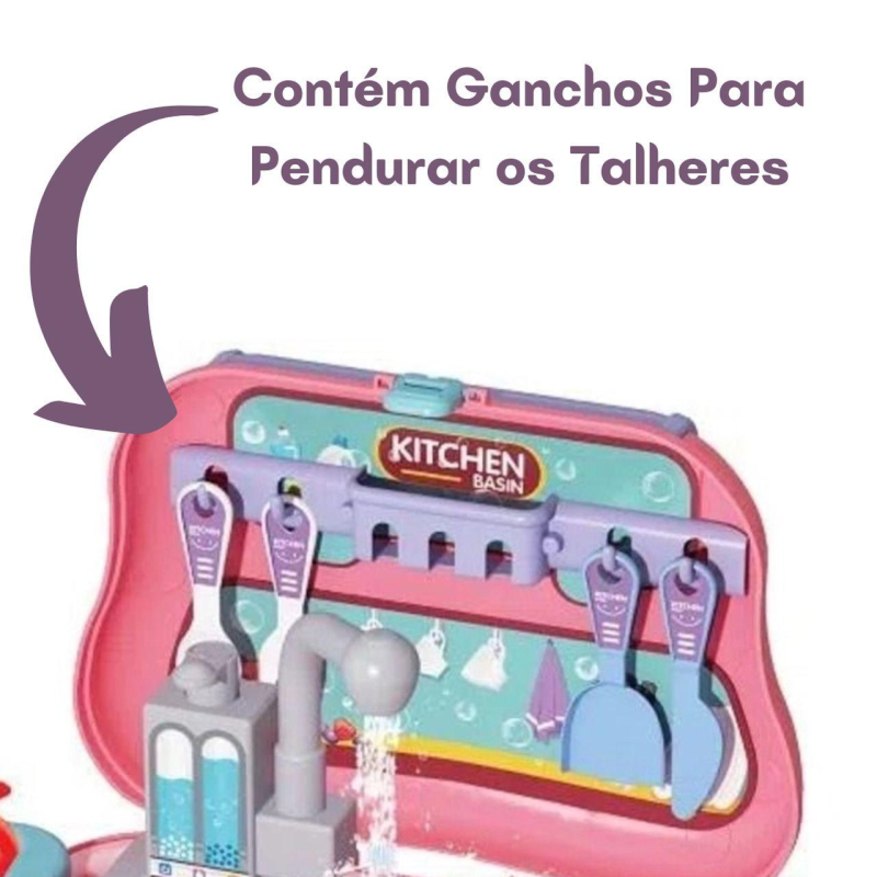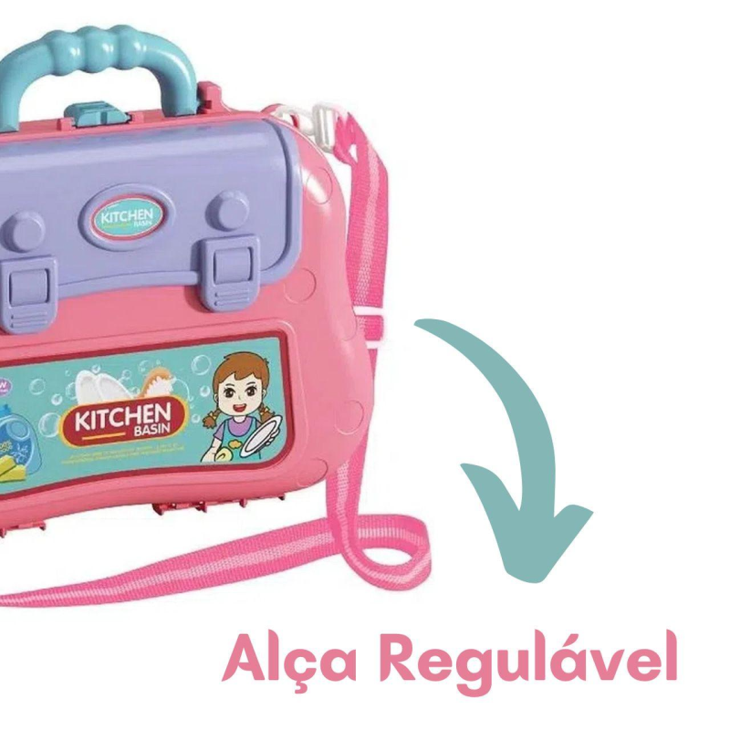 ბავშვთა სამზარეულოს კომპლექტი შექმნილია წყლის ავტომატური ცირკულაციით და 180 გრადუსით მბრუნავი ონკანით, საყოფაცხოვრებო ტექნიკითა და საწმენდი ხელსაწყოებით. კომპლექტში შედის 18 ნივთი. რადგან ნიჟარა ჩემოდანშია, ის ადვილად გარდაიქმნება მხრის ჩანთად და შესაბამისად, მისი ტარება მარტივია. კორპუსის ფერი – მუქი ლურჯი