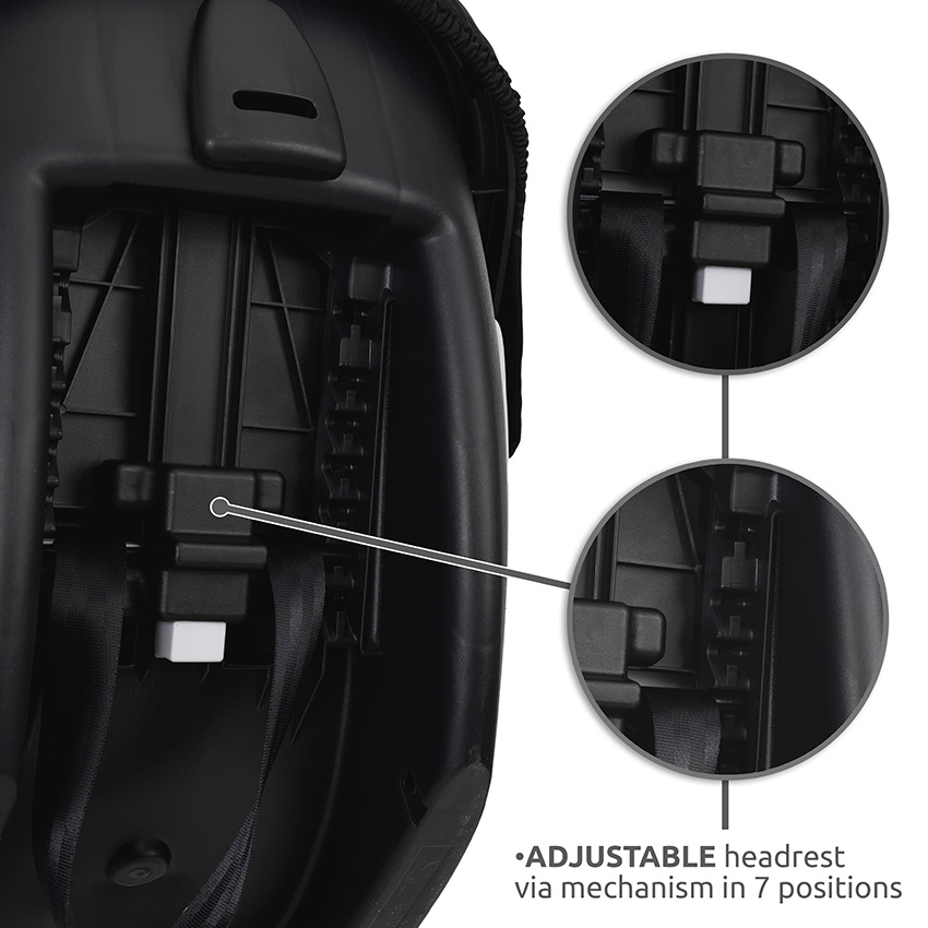 ღვედის სისტემა რეგულირდება მზარდი ბავშვის სიმაღლისა და წონის მიხედვით