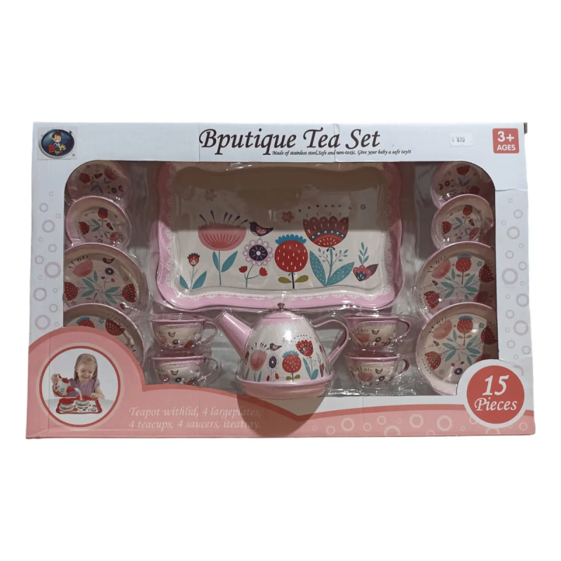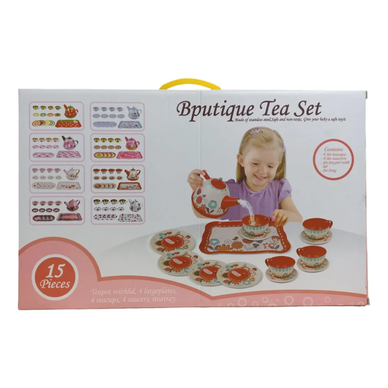 ლითონის ჩაის კომპლექტი, ბავშვებისთვის განკუთვნილი ჩაის კომპლექტი, ყავის კომპლექტი 15 ცალი. პარამეტრები: